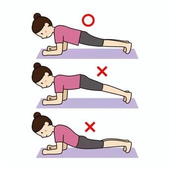 ・肘とつま先で身体を支え、一直線をキープ。