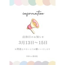 3月13日・14日・15日はお休みとなります。